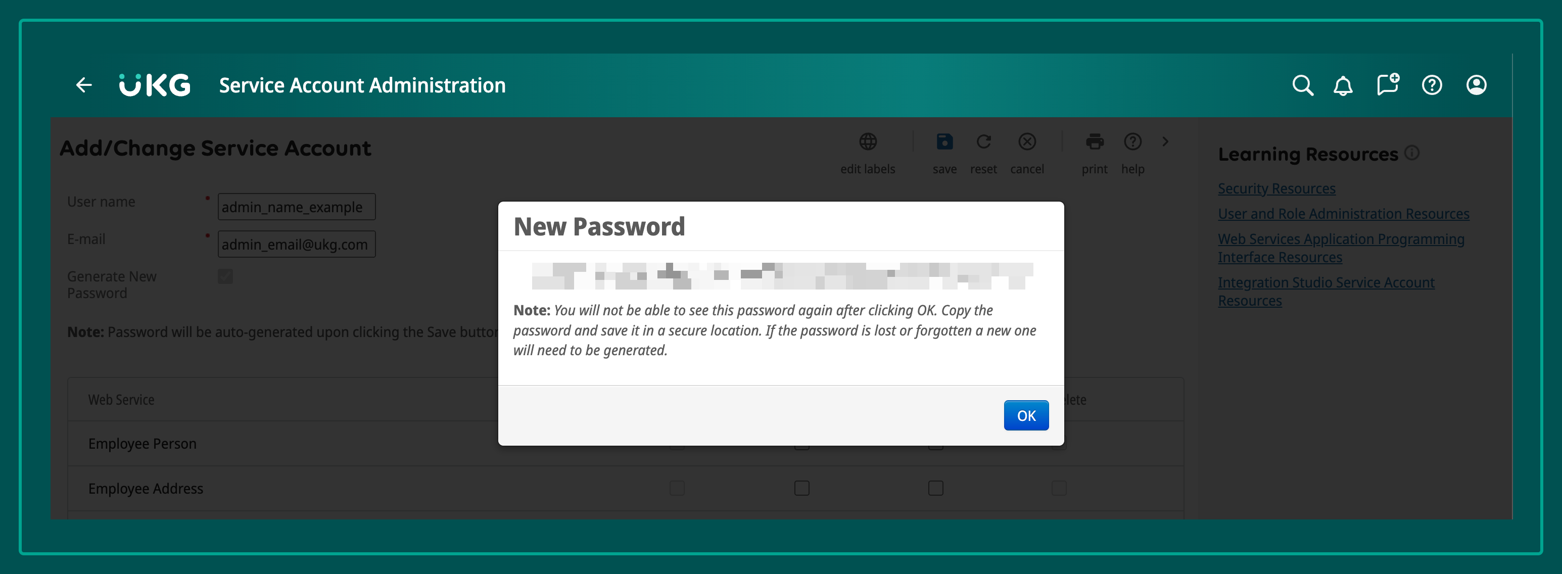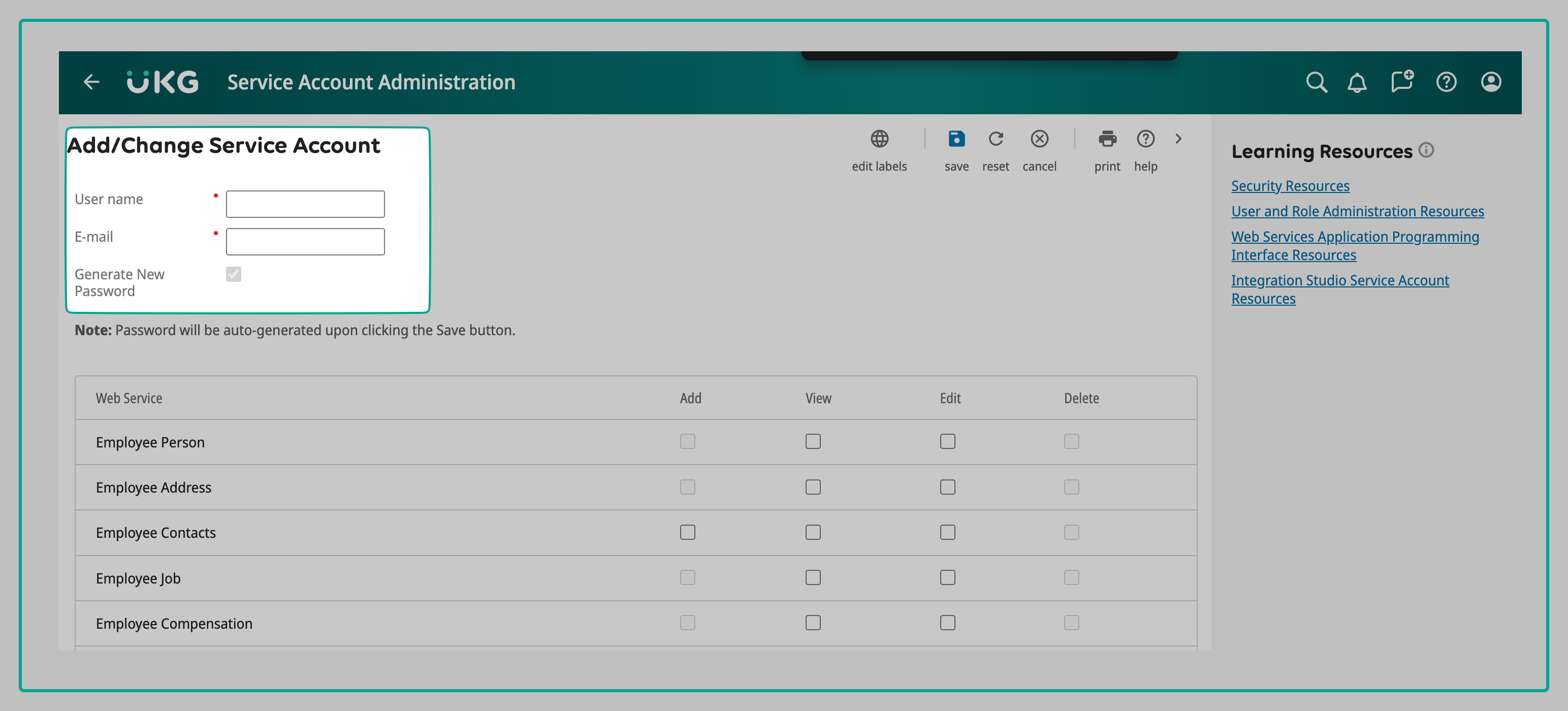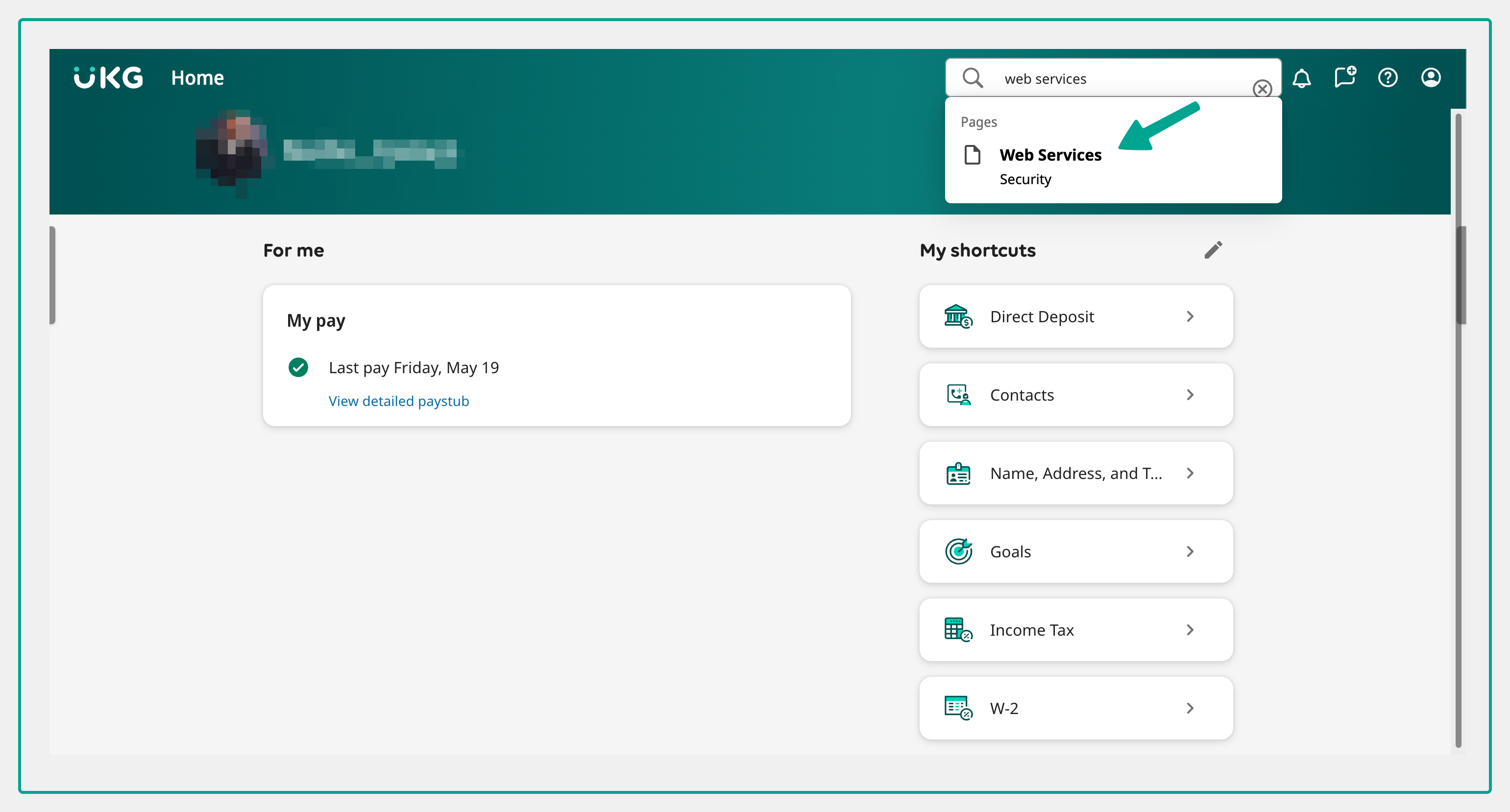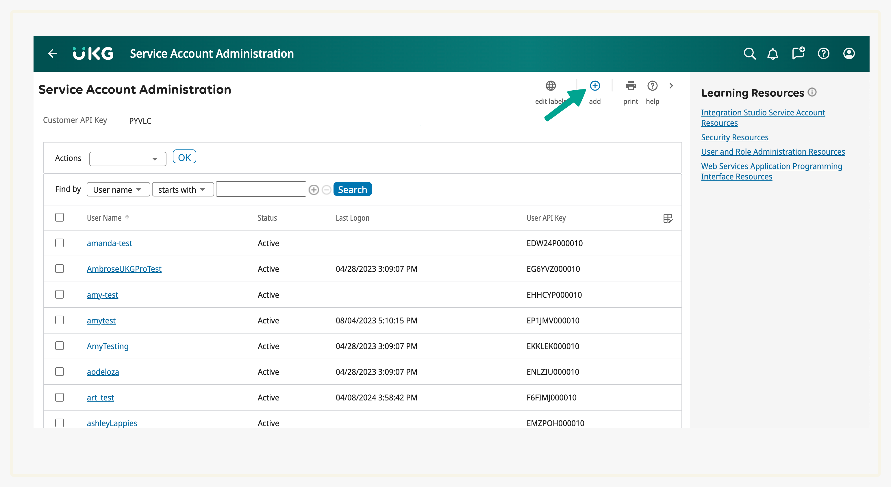 Log in to UKG Pro and search "Service Account Administration" on the top right